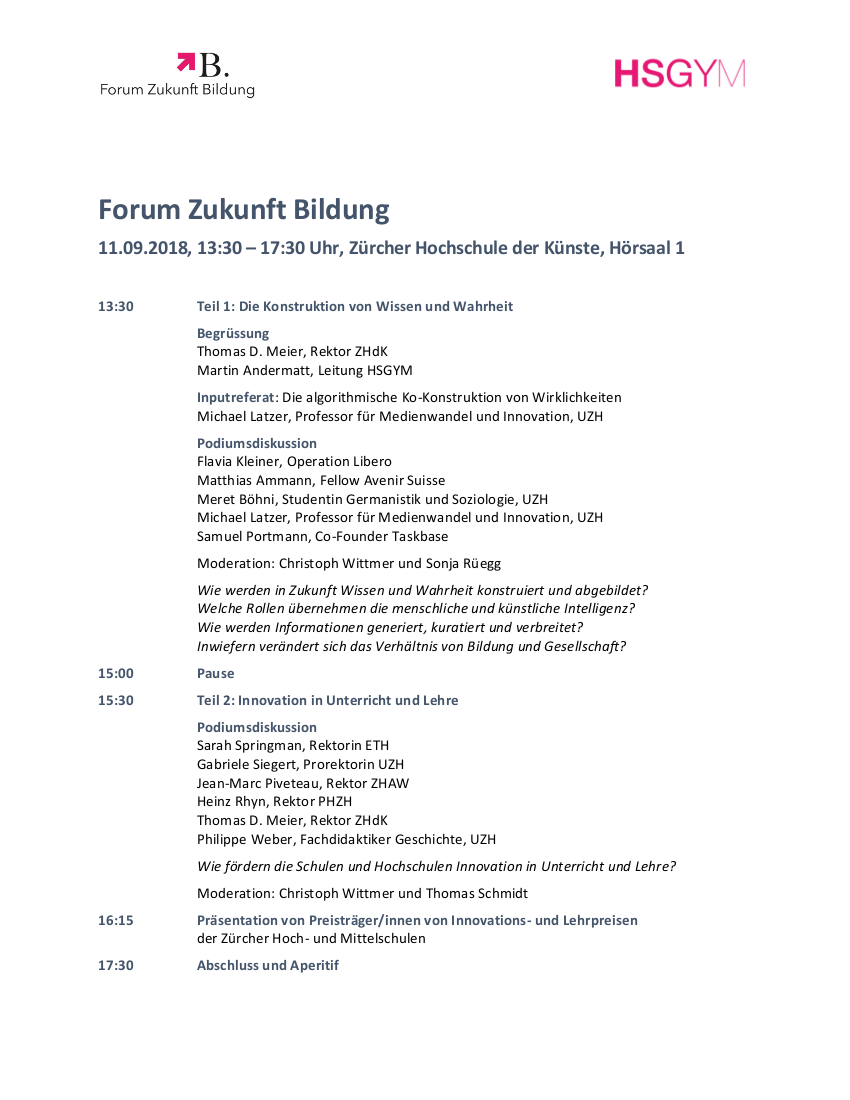 Michael Latzer @ Forum Zukunft Bildung 2018