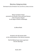 | Effective use of the Internet as a crucial information and communication network is increasingly necessary to participate in society. This thesis analyzes differences in everyday Internet use and discusses their social implications. A sociological digital inequality perspective based on the knowledge gap hypothesis forms the main theoretical framework. It assumes that Internet use depends on and contributes to social position. Quantitative international surveys were analyzed using structural equation modeling. Network and automated content analysis were additionally used on web data. Results show that general Internet uses can be grouped into four core purposes (information seeking, social interaction, entertainment, and commercial transaction). For valid cross-country comparisons of usage types, measurement invariance testing was found critical. There are pronounced second-level digital divides with consistent age, education, and experience effects. Differences in specific online activities—privacy protection, political participation, and science participation—are mainly explained by interests and Internet skills, and these in turn depend on social position. Overall, Internet use tends to reinforce social inequalities but policies aimed at enhancing Internet skills may counter this. The consequences for individuals’ subjective well-being is identified as a future avenue for empirical digital inequality research. |