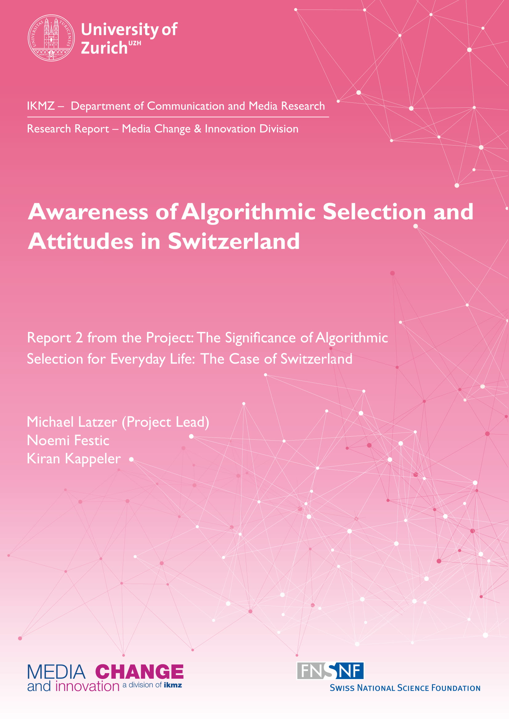 - Latzer, Michael / Festic, Noemi / Kappeler, Kiran (2020): Awareness of Algorithmic Selection and Attitudes in Switzerland. Report 2 from the Project: The Significance of Algorithmic Selection for Everyday Life: The Case of Switzerland. Zurich: University of Zurich. http://mediachange.ch/research/algosig