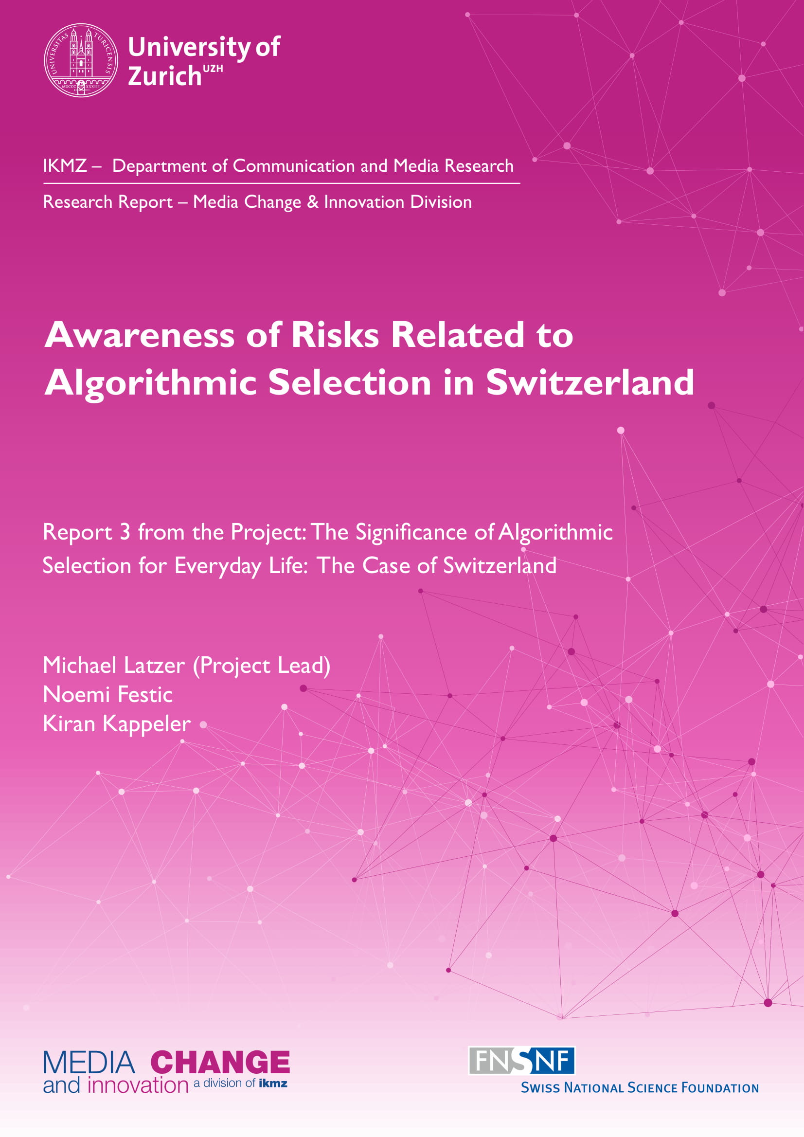 - Latzer, Michael / Festic, Noemi / Kappeler, Kiran (2020): Awareness of Risks Related to Algorithmic Selection in Switzerland. Report 3 from the Project: The Significance of Algorithmic Selection for Everyday Life: The Case of Switzerland. Zurich: University of Zurich. http://mediachange.ch/research/algosig
