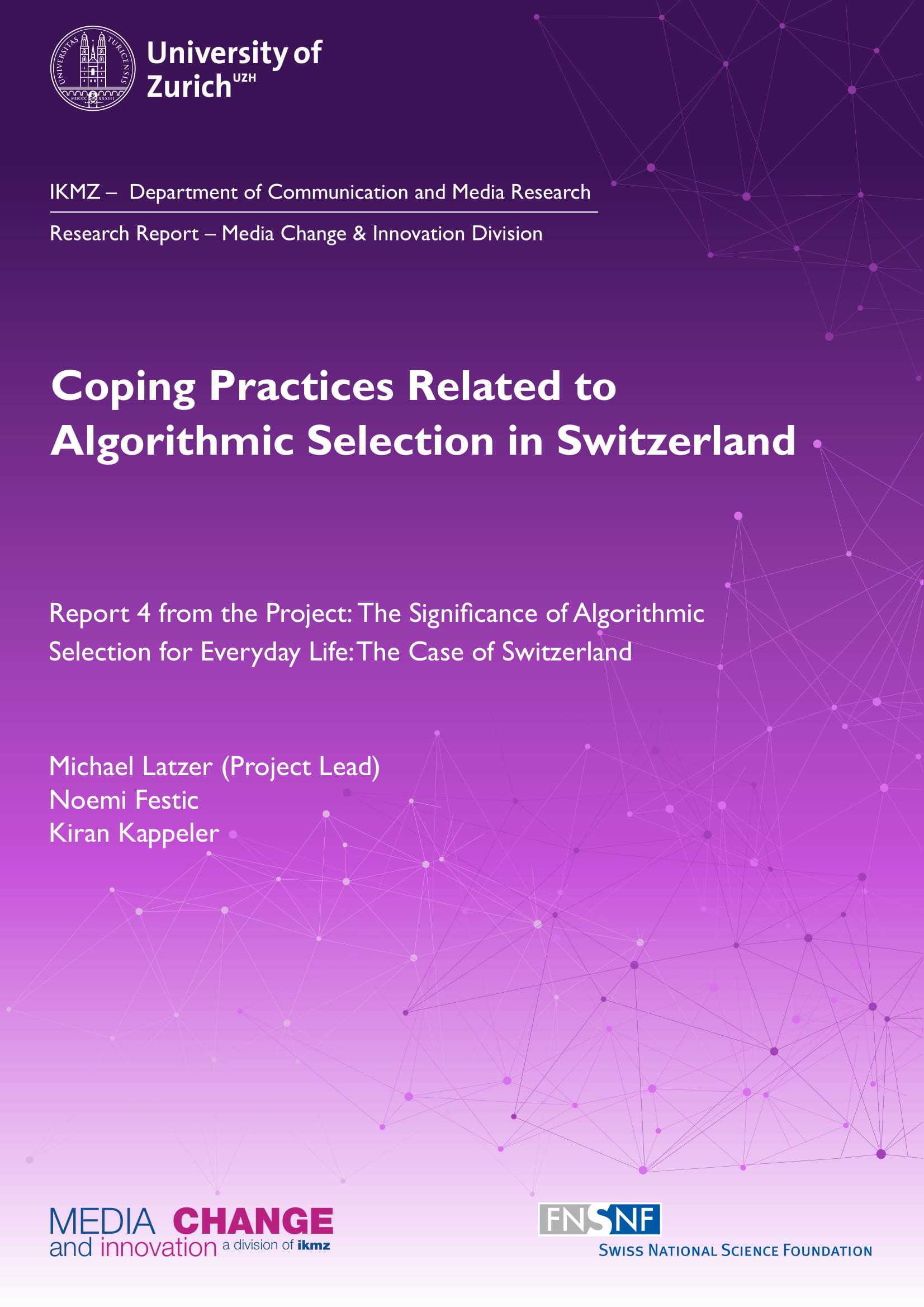 - Latzer, Michael / Festic, Noemi / Kappeler, Kiran (2020): Coping Practices Related to Algorithmic Selection in Switzerland. Report 4 from the Project: The Significance of Algorithmic Selection for Everyday Life: The Case of Switzerland. Zurich: University of Zurich. http://mediachange.ch/research/algosig
