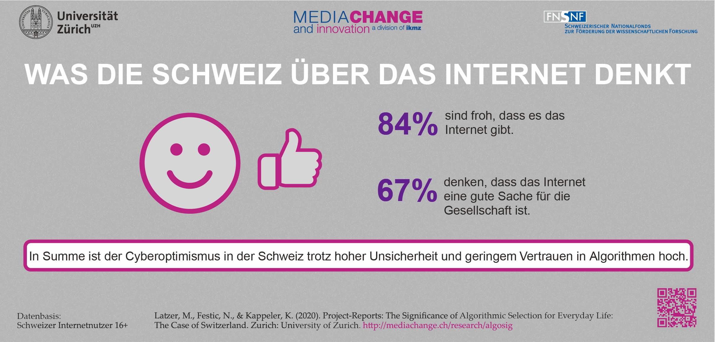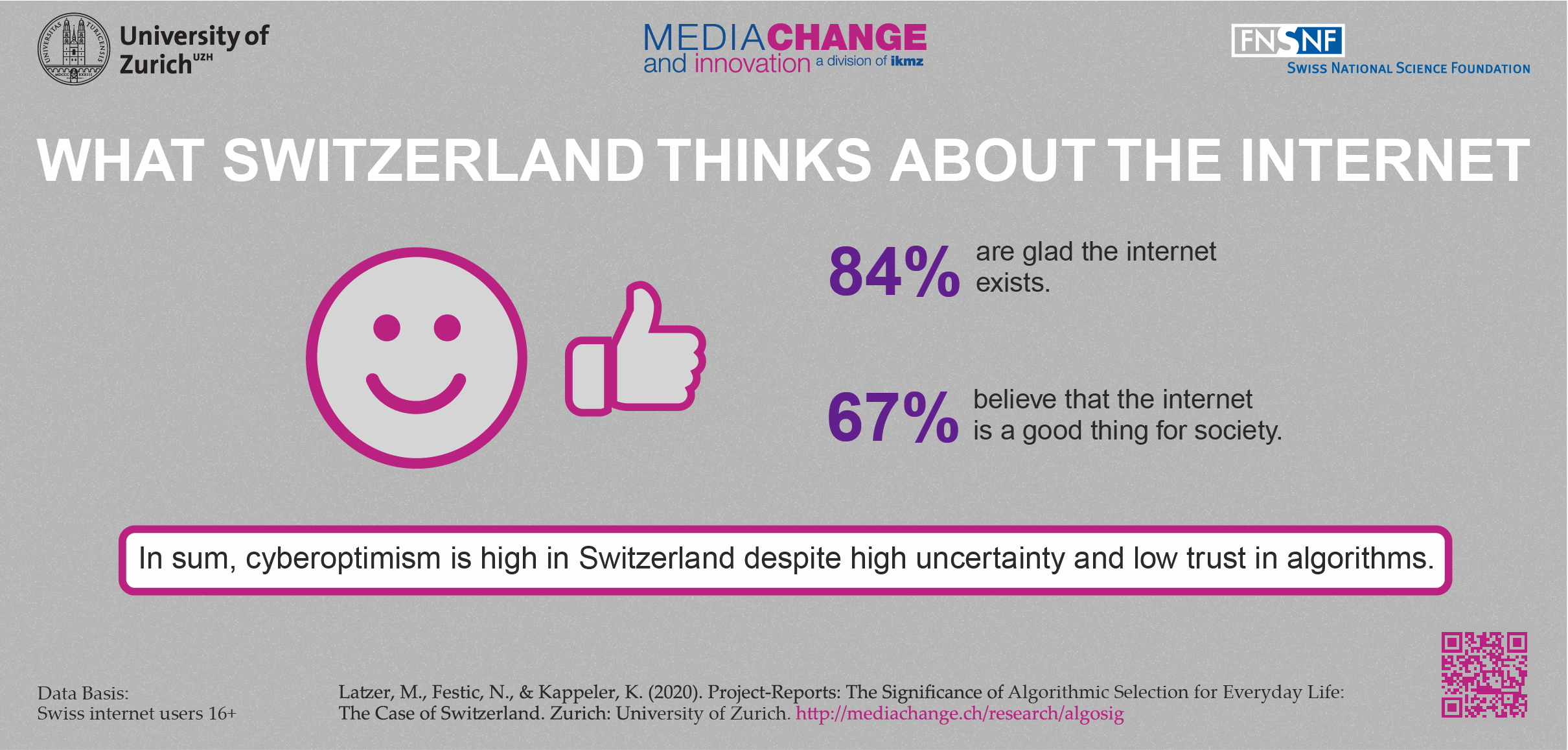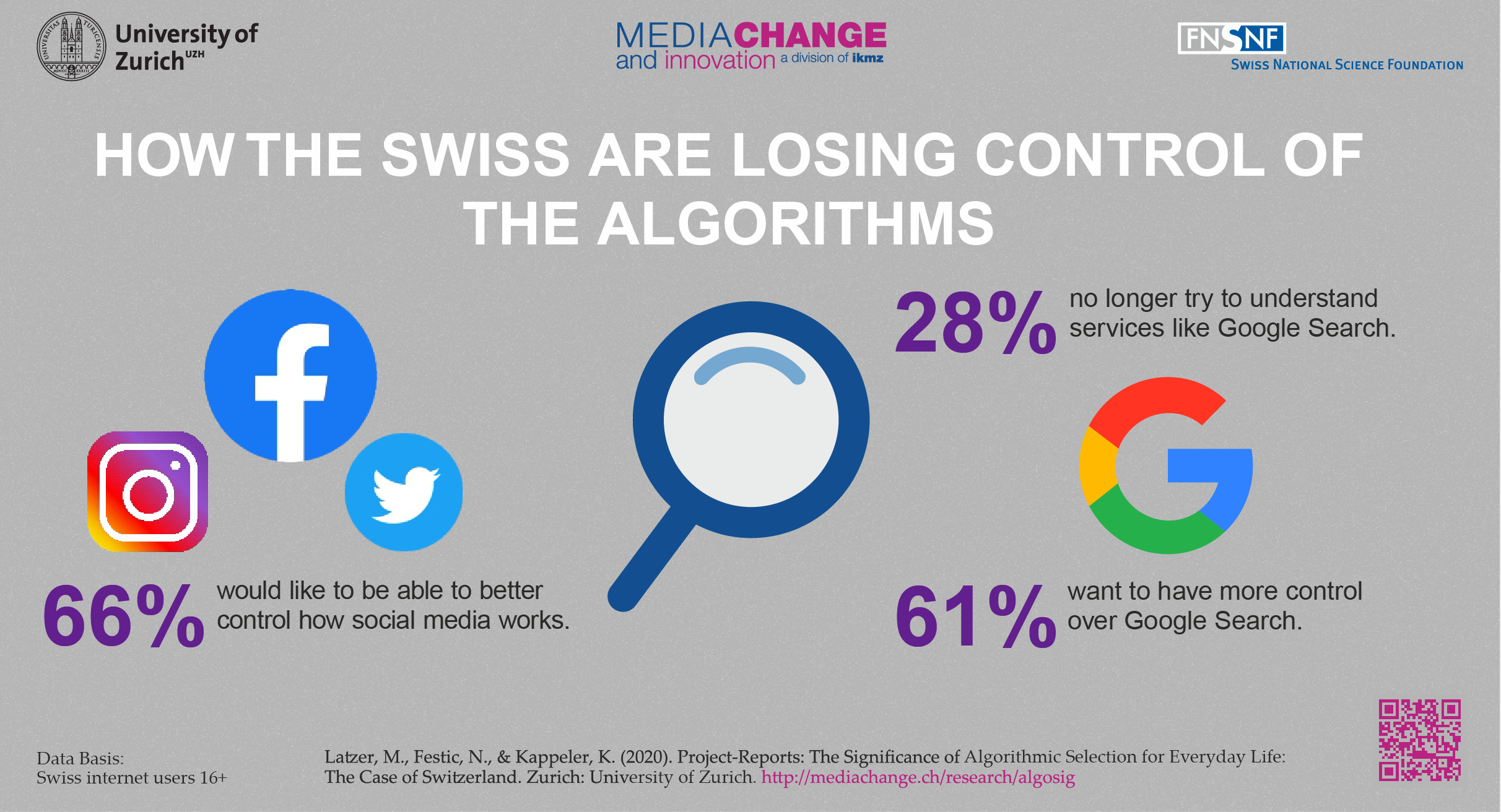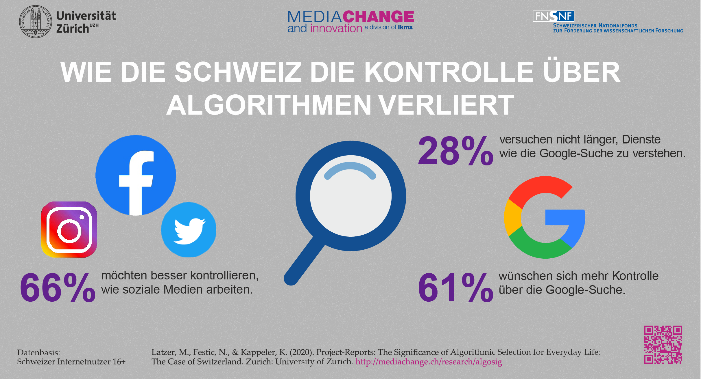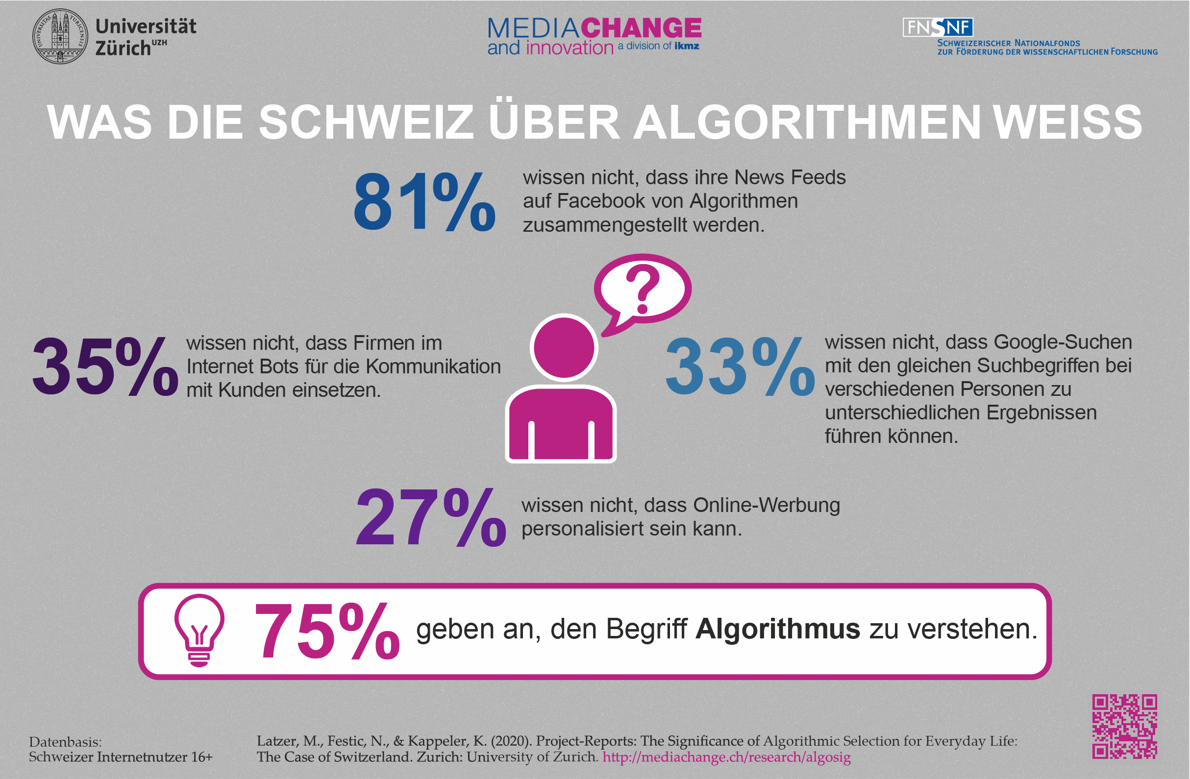 - Latzer, Michael / Festic, Noemi / Kappeler, Kiran (2020): Awareness of Algorithmic Selection and Attitudes in Switzerland. Report 2 from the Project: The Significance of Algorithmic Selection for Everyday Life: The Case of Switzerland. Zurich: University of Zurich. http://mediachange.ch/research/algosig